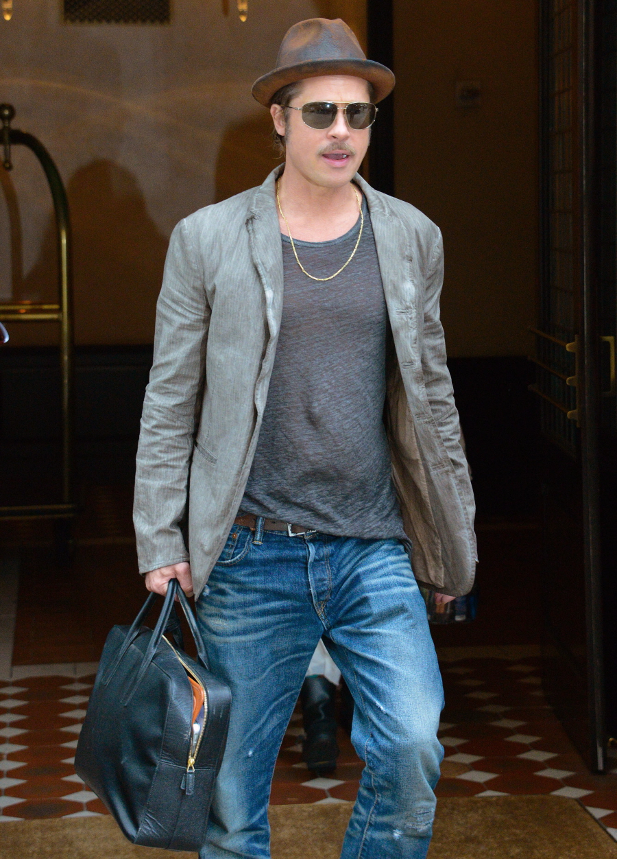 Then Brad and the cast sat down with Good Morning America for a pre-taped interview in which Brad got most of the questions. Shia LaBeouf is still trying so hard to impress Brad! It’s sort of cute. When asked about the wedding, Brad said: “It was an amazing day and I think there’s an added security that comes with it.” Security? After ten years and six kids? That’s a little bit strange to me. But maybe Brad still thinks Angelina might pull a runner. Brad was also asked about his previous stance of not marrying until there was marriage equality in America. He side-stepped the question and just said: “That’s just a no-brainer to me. That’s the basis of our country. Equality for everyone.” I personally think that Brad and Angelina DID wait until there was marriage equality in half the states.