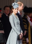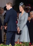 This outfit looks like it couldn’t make up its mind whether it should be a gown or dress. If it was one or the other, I’d have really liked it but not in its mishmash state of two styles. That mullet effect is awful. A floor-length gown with a discreet slit would have been just the thing for this event. I do like the gathered waist and think a stronger jewel color would have suited Kate better. Those 3/4 length sleeves also give it too casual a look which I really dislike. It gives the effect that she rolled up her sleeves so that she wouldn’t get her clothing dirty. But that only happens when you’re doing work, right?