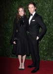 Here are some more photos from last night’s London Evening Standard Theatre Awards. I told you there was a surprisingly good turnout! Tom Hiddleston and Benedict Cumberbatch might got most of the headlines, but we should take a moment and appreciate the lovely dudes like James McAvoy, Mark Strong, Eddie Redmayne, etc. You can read more about the ES Awards here. Let’s start with James McAvoy and his wife Ann Marie Duff. They make a lovely couple, right? I love the velvet on her gown too – very wintery and sexy. It would have been better if the whole gown was velvet. McAvoy present the award for Best Play.