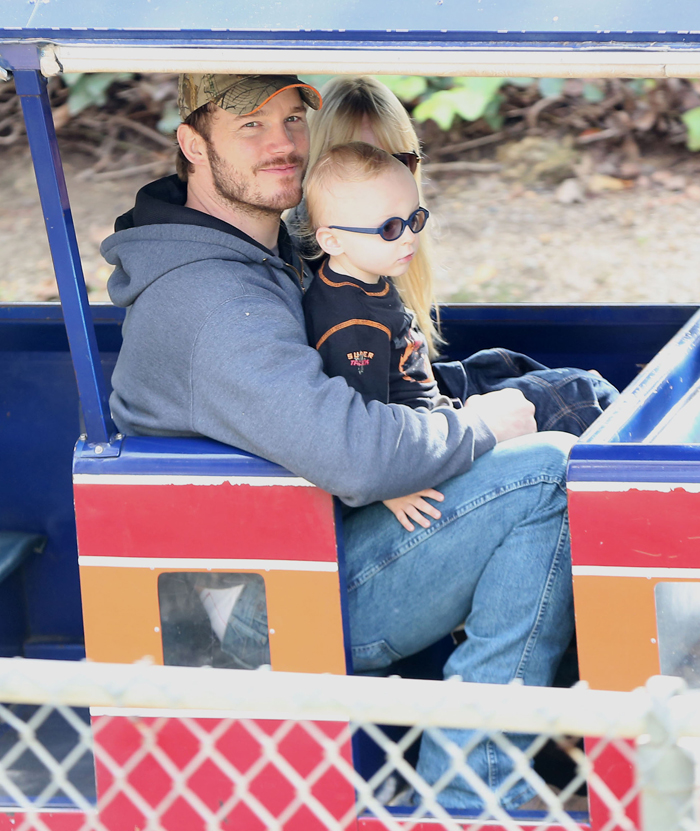 I’m including some photos of Chris with Anna Faris and little Jack Pratt at LA’s Travel Town museum. Jack loves trains!