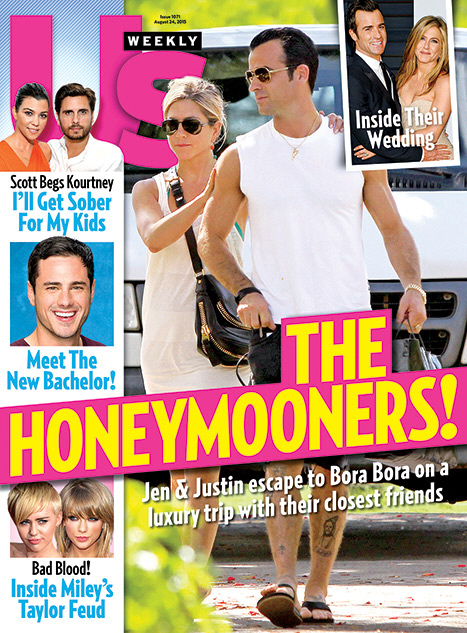 As you can imagine, all of this week’s gossip magazines have stories about Jennifer Aniston and Justin Theroux’s wedding and honeymoon. Us Weekly and People Magazine did wedding/honeymoon covers, and In Touch Weekly has yet another cover with “Jennifer Aniston” and “BABY” (they say she’s adopting a baby… soon). What strikes me is how little we actually know about some of the big things, like… did Justin have any say in the wedding plans? What did Jennifer’s dress look like? Are we ever going to see those Terry Richardson photos? In any case, here are some random pieces of gossip: