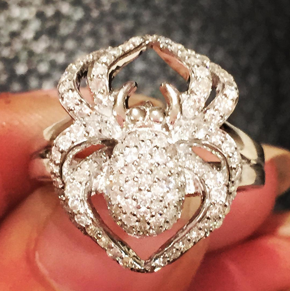 “I wanted something different. The traditional rings were just really, really traditional and I just wanted something different, unique and special. We saw this and I was like, I love that! It’s not that I love spiders — I actually don’t really love spiders that much — but it’s not that and it doesn’t represent that to me. It just represents my personality more and something different for our relationship.”