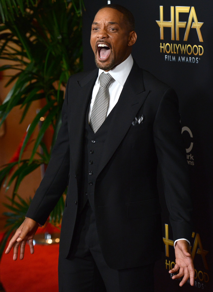 Here are some photos of Will Smith at this weekend’s opening night of the Hollywood Film Awards. A lot of big-names are going to be coming out for the Hollywood Film Awards this week as Oscar season really begins to kick off and many actors want to get their films seen before more LA-centric audiences. With the endless discussion of who’s up and who’s down in the early Oscar races, Will Smith’s name has been strangely absent from most conversations. Which is weird, because his film looks really good, really timely, and like it has the potential to garner him another Oscar nomination (he was previously nominated for Ali). Here’s the trailer for Concussion, where Will plays Dr. Bennet Omalu, the neuropathologist who identified the dangers of multiple head traumas in football players.