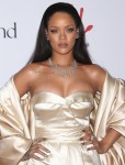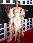 Rihanna wore Dior for the big event. This is a strapless gown and a matching cape in what looks like champagne silk/satin. She also blinged out in some great diamonds. I like the idea of the Dior more than the execution, and the gown is so ill-fitting on Rihanna, I kind of wonder if the piece was from the Dior archives and she just decided to wear it and didn’t feel like she could or should get it tailored. Like, her bust does not fit in the dress. I’m surprised she can breathe.