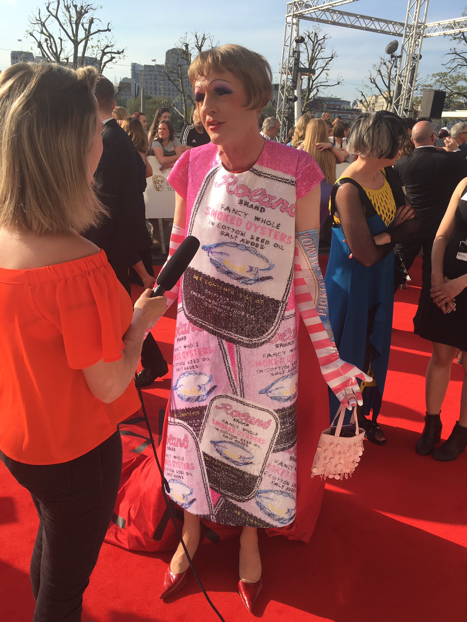 I am watching live. Gah. It’s Graham Norton. Did Stephen Fry flounce again? Anyway. Anyone who says that Grayson Perry doesn’t win the red carpet is WRONGER THAN WRONG.