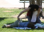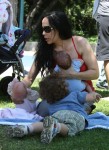 Nadya Suleman went on a family and nanny outing to a park near her home yesterday. It was more of the same for Octomom, according to some of the paparazzi capturing the incident. The unmarried mother of 14 chatted on her cellphone, posed for the cameras, and handled her babies in a way that was clearly meant for the cameras. At one point she pulled a Britney and nearly dropped one of her newborns on a picnic blanket, her blue-tipped manicured hands scrambling to catch the infant before it hit the ground: