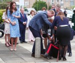 Here are some photos of the Duke and Duchess of Cambridge at Stewards Academy in Essex today. They went to the academy for an event on behalf of their umbrella organization, Heads Together. They met with children and did some things. Upon their arrival, Essex Lord Lieutenant Jonathan Douglas-Hughes went ass over teacup and William and some other people went to the older man’s aid. While Kate stood back and touched her hair.