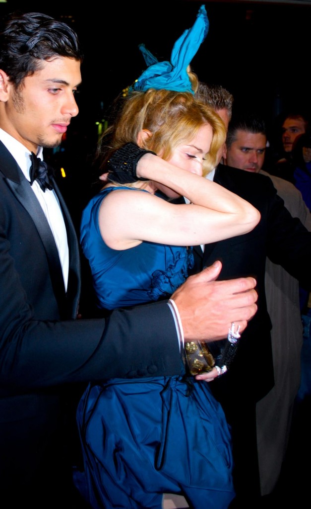 I know plenty of women in their forties and fifties who look very youthful and appealing because they embrace their age and dress attractively and appropriately without sacrificing their style. Madonna, on the other hand, reeks of desperation and just looks plain silly most of the time. In these photos she looks like an aging street urchin/waif who found a pretty piece of fabric in some garbage can and tied it in her hair without looking in the mirror. (Hmmmmm, I don’t think she wants to interpret her haute couture outfit this way, but this is how I see it!) Poor pathetic woman…Trying to hang on to her youth with her fingernails, but instead she draws attention to her age with her ridiculous outfits. If I were Jesus’s mother, I would have to bite my tongue every time I was with my son.