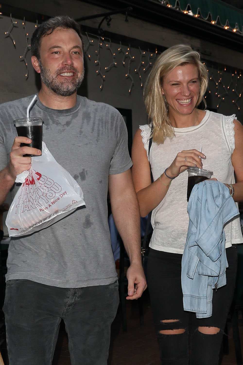 This is getting ridiculous. Ben Affleck spectacularly debuted his “new” girlfriend, SNL producer Lindsay Shookus, when they went out for dinner in LA last Thursday night, at a restaurant called Giorgio Baldi (only one paparazzi agency had those photos, they’re the ones with Lindsay in the fug floral top). On Monday they went out for coffee and then that night they got pizza at a different Italian restaurant, where more photographers showed up to document their goofy-looking mutual affection and Ben’s stained gray t-shirt. My theory yesterday was that Lindsay tipped off the paps because there were so many articles afterwards about what a cool chick she was, along with quotes to People about how she’s not reckless and there was no affair. Some of you think that Ben forced Jen’s hand, which is also a solid theory, especially since Giorgia Baldi is a paparazzi hotspot. Whether Ben “got outed” or “outed” himself, he’s rolling with it, and Jen is too. She’s had a lot of sourced quotes with Southern shade about how Ben can’t be alone, along with her side of the story confronting Lindsay about the affair. ET Online even has newer quotes from a source close to Jen which claim that the cheating was definitely the impetus for the divorce. Here are those quotes and they do sound straight from Jen:
