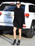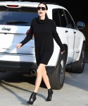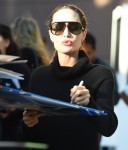 Since everyone seems to enjoy talking about Angelina Jolie’s fashion these days, please enjoy these photos of Angelina over the weekend. She attended an event for the Directors Guild of America, a guild of which she is a member. I assume this was some kind of screening or Oscar-voter event. There’s no real dress code for that kind of thing – it’s just a screening, not a premiere, and celebrities and directors generally just wear something professional-looking, like a suit or a conservative dress. Angelina chose to do something rare (for her) these days: a chunky sweater minidress and a ankle booties. I like the sweater dress just fine – it’s black and sacky and that’s why she chose it. But the ankle booties? HATE. I always hate them, on any and every woman though. I just don’t think they’re comfortable or flattering. Still, this is a cute, “youthful” look for Jolie. I feel like her kids might be styling her these days.