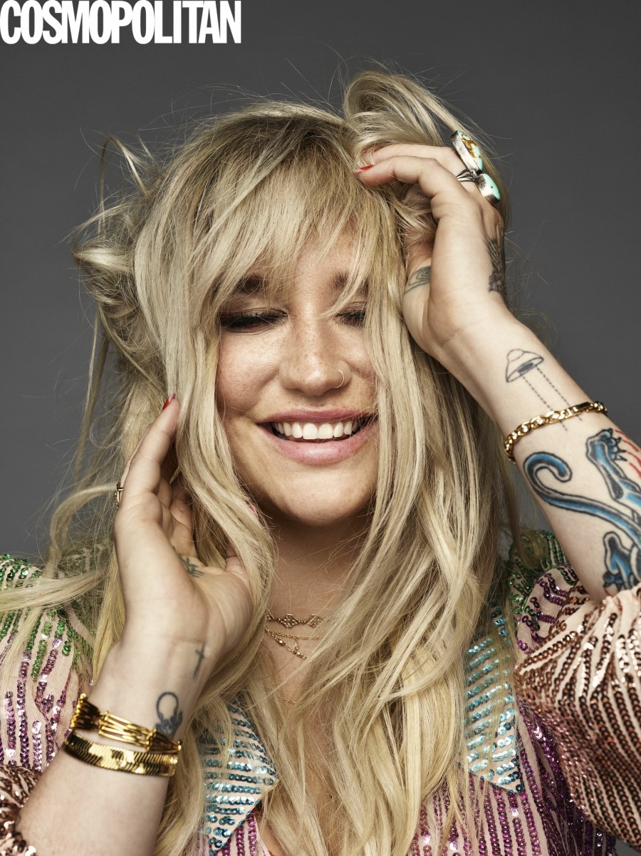 Kesha covers the June issue of Cosmopolitan to promote her album, Rainbow. Rainbow actually came out last year, so I guess she’s still talking about it… and probably promoting the tour as well. She’s going on tour with Macklemore, which seems like a weird pairing, but it will probably be fine. Kesha is, at this point, somewhat free from Dr. Luke. I actually don’t know how everything has panned out, and I feel like she’s still tied to him financially, especially with regards to her back catalogue of music. But she’s able to record new music, tour and work with anyone she wants to work with, which is the freedom she wanted. Kesha doesn’t really get into details in this Cosmo cover profile, but she does sound like she’s in a better place: