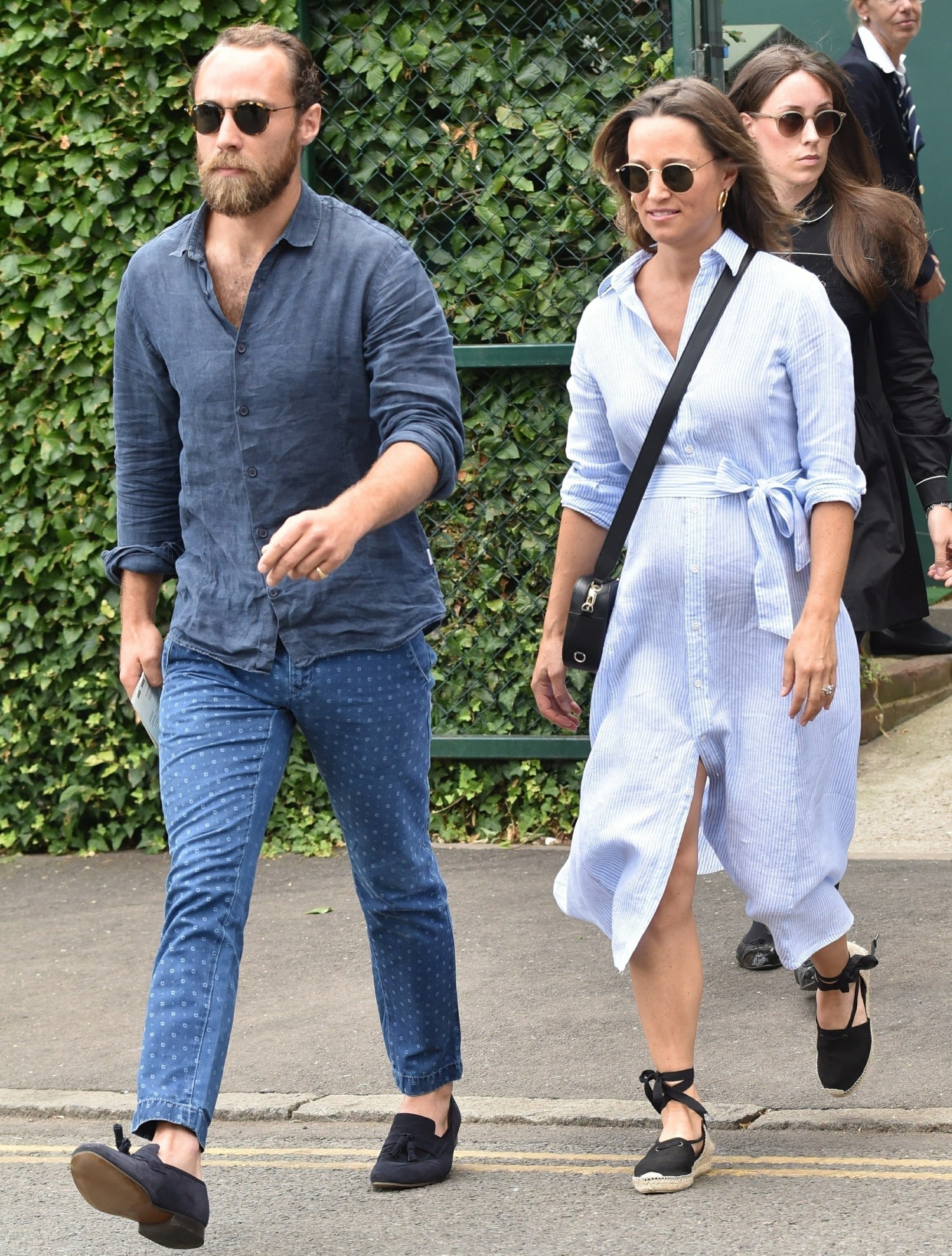 A few days earlier, Pippa wore a much nicer look – a Ralph Lauren shirtdress which was billowy enough to mask her bump. By my count, Pippa went to Wimbledon with her brother twice and her husband once. My favorite thing about this look? She actually wore flats!! Also: James Middleton’s pants are what I would expect from someone who has lost millions of dollars in a marshmallow scheme.