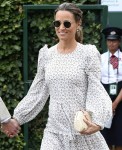 I’m late to posting these photos, but it’s never too late to talk about Pippa Middleton’s fashion, right? Pippa Middleton loves Wimbledon and she comes out for some of the men’s matches every year, as does Mother Middleton (Carole). The Middleton women are ride-or-die for Roger Federer, so Pippa attended three of Roger’s matches during the fortnight – two on Center Court, and the one match Roger played on Court 1, the less prestigious court, and the court where he lost to Kevin Anderson. After Roger lost, I don’t think Pippa went to Wimbledon again. Which is too bad, because she missed some other good matches. Still, I get it: she’s ride-or-die for Federer. Roger even came to her wedding.