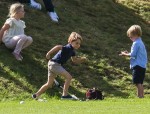 He’s rambunctious when he gets the chance, like at his dad’s polo match: “George ran with his head up as fast as he could,” says an observer. “He looked back at Charlotte once or twice but kept on going. He was not holding back. And the first thing he did when he got there was slide down the hill on his bum.” Mom Kate pointed out a group of photographers to the children as a gentle reminder, but “she let them get on with it, sliding and rolling on the grass. They were loving the great big area to play in on such a sunny day.”
