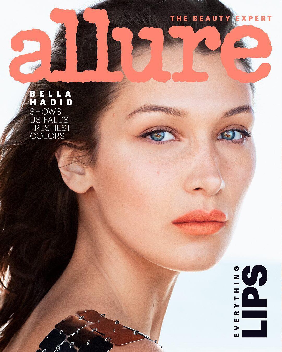 Bella Hadid covers the September issue of Allure, which is apparently The Lips Issue. The editorial – which you can see here – is focused on lipstick, lip liner, and all of the hot lip colors for fall. Personally, I think Bella looks totally wrong in half of those lip colors, but what do I know? I’m obviously quite gauche with my Baby Lips tinted lip balm. Anyway, Bella’s Allure interview is quite harmless – she’s very girly and she loves talking about beauty/skincare stuff. She’s self-absorbed, but she’s not “woe is me” about every little thing. Some highlights: