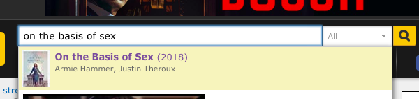 By the way, if anyone is wondering about the importance of this movie about Justice Ginsburg’s fight to make it in a man’s world: When I typed in the title of this movie to IMDB, the drop-down menu names listed are Armie Hammer and Justin Theroux. And in the cast list, Oscar-nominated and Star Wars headliner Felicity’s name is number three. Honestly, I think the person who would object to his name being first the most is Marty himself.