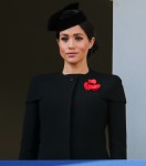 Because Prince Philip did not attend the Remembrance Day parade at The Cenotaph in London on Sunday, the balcony arrangements shifted, which is why the Duchess of Sussex ended up on a balcony with the first lady of Germany, Elke Büdenbender. Meghan’s black coat had structured shoulders and seemed pretty boxy. I think she was probably trying to balance her bump, without completely realizing that we were only going to be able to see her from the waist up, if that. You can also tell that she’s gaining some weight in her face from the pregnancy. Someone pointed out that Meghan did more to honor veterans and the memory of the fallen than Donald Trump and now I can’t stop thinking about that.