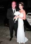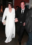 Quentin Tarantino has said many times over the years that he didn’t want to get married and start a family until he felt like he had given all he could to his career. Meaning, I think Quentin’s nuptials signal that he believes he’s nearing the end of his directing career? Tarantino married his long-time girlfriend/fiancee Daniella Pick yesterday in Los Angeles. Everyone is describing this as an “intimate ceremony,” but it seems like photographers/paparazzi were there to document everything. In an interesting twist, Tarantino and Pick didn’t seem to mind the paps – they happily posed for pap photos at every stage of their wedding day. People Magazine had the exclusive wedding portrait, but for my money, some of the shots the paparazzi got were much better than the formal portrait.