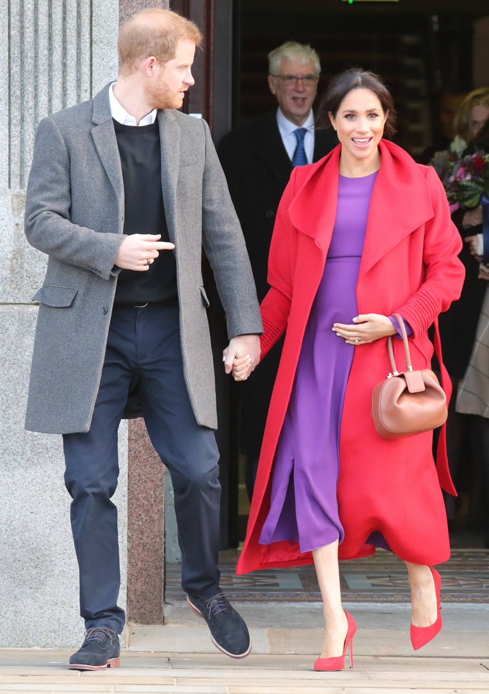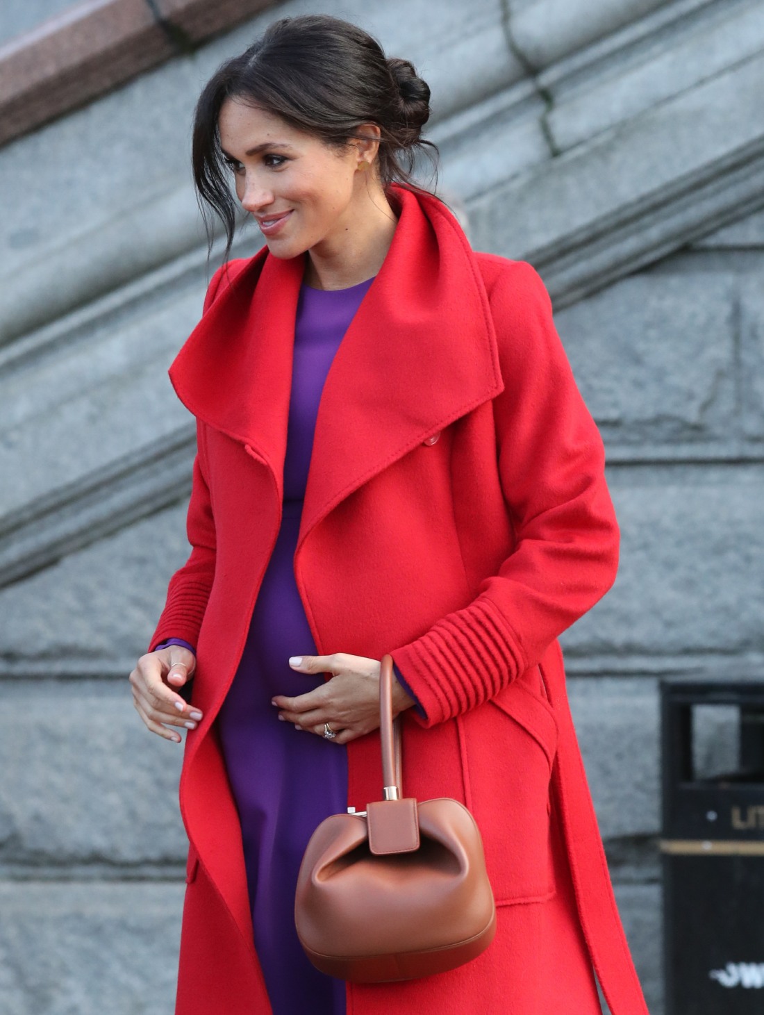 I don’t really have any interest in Meghan Markle or the BRF, but I feel compelled to say it’s nice to see her in colors. I personally like the contrast of the bold red and bold purple. It looks great and very out of character for her. Perhaps pregnancy is making her feel inclined to try new things.