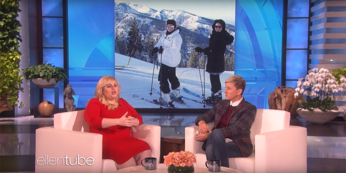 Rebel Wilson is a comedian and so she takes artistic license with her stories, like a lot of us do. However she told slightly different stories to Ellen and Jimmy Fallon about being helped down the mountain while skiing in Aspen. Given her history of being called out for things she says, it was questionable. Maybe she was just being more self deprecating on Ellen. In the version she told on The Tonight Show, she fell coming off the ski lift and had to be helped down by ski patrol on the sled. She said her foot was numb from the boot and implied she was hurt. On Ellen she said she fell, but she showed a photo standing at the top and said that she got up again and just didn’t want to ski down. Rebel is promoting her movie Isn’t It Romantic, a romcom parody which opened today.