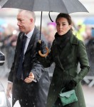 This is a really good look for her. I haven’t seen pics yet of the dress underneath, but the coat looks nice on her, the scarf and boots look nice and practical, and I do usually like her hair pulled back like that.