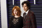 Christina Hendricks has been open about the fact that she’s not a natural redhead. In 2011 she explained that she was “obsessed with Anne of Green Gables” as a child and that her mom helped her put a rinse in her blonde hair to achieve that look. In a new interview with Busy Philipps, Christina talked a little more about being a redhead. She said it helps her stand out and that she picked a category and went with it. Christina was wearing a really fug pink and red ruffle gown with sequin hearts on it, including two big hearts over her boobs. It looked like something Busy would wear and of course Busy loved it. Apparently Christina is a big fan of Busy’s show and of her experimental fashion. They also know each other from working together on the 2011 movie I Don’t Know How She Does It. Here’s what she said about her hair and marriage.