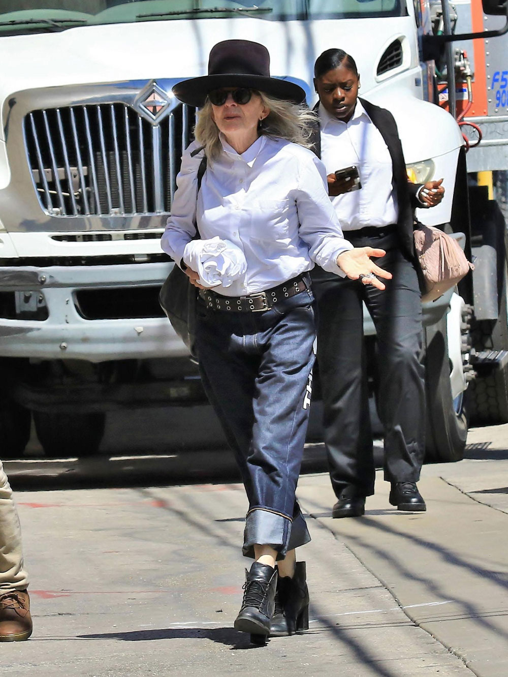 Oh, is the Annie Hall look back? Diane Keaton has always dressed like this. It’s just this time she’s pared it back so she doesn’t look ridiculous, compared to her normal look. I think people are complimenting her and hoping she gets the hint.