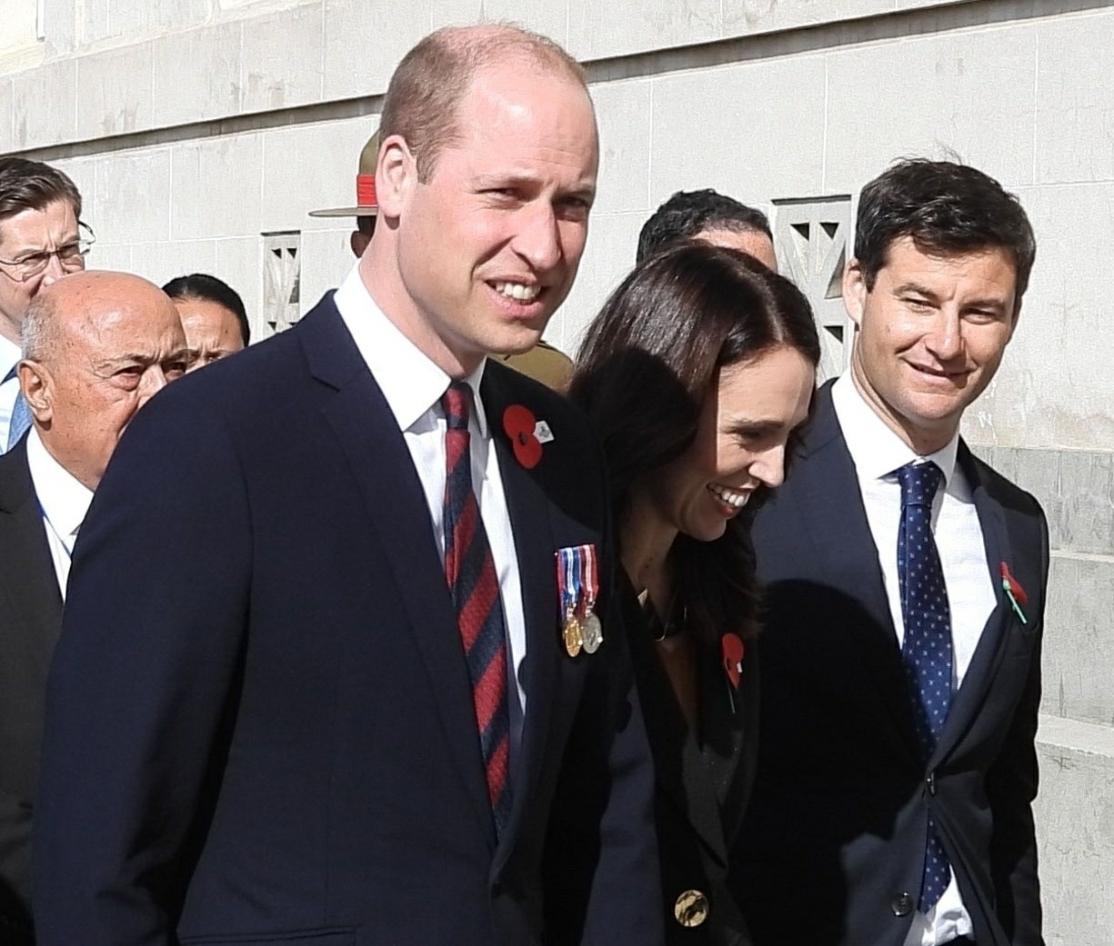 By now, all of the royal-gossipers have clocked the narrative that the Duchess of Cambridge traveled from Norfolk to London with her kids and not William. This is not some “Kate storms back to London after a falling out about his affair with Rose Hanbury” story. Kate and the kids returned to London because George’s school has started back up, and because William had already left England for this trip to New Zealand. The Queen asked William, as a senior royal who barely has anything scheduled, to go to NZ to honor the men and women who passed away in the Christchurch mass shooting. He’s also there for Anzac Day, which is today. His visit began in Auckland, where he attended the Anzac Day services with prime minister Jacinda Ardern.