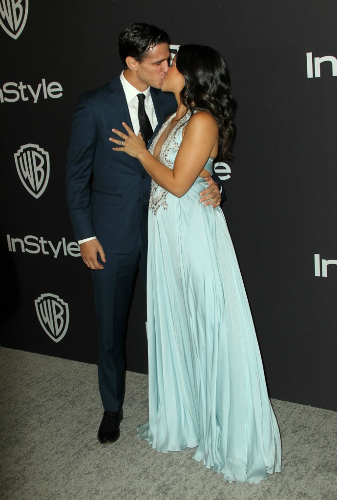 Gina Rodriguez married her partner of three years, Joe LoCiero, over the weekend in what looks like a beautiful outdoor ceremony. Gina met Joe when he played a stripper on her show Jane the Virgin and they started dating soon after that. And that’s sweet… but I also want to believe that at least one bridesmaid suggested they hire Joe for the bachelorette party. In August last year, Gina and Joe both posted some photos that suggested they’d gotten engaged during a beach getaway. They never really hyped the engagement or even the relationship much. They showed up to red carpets and such but they rarely used their relationship for publicity, which is nice, but also why this over-the-top wedding video threw me for a loop: