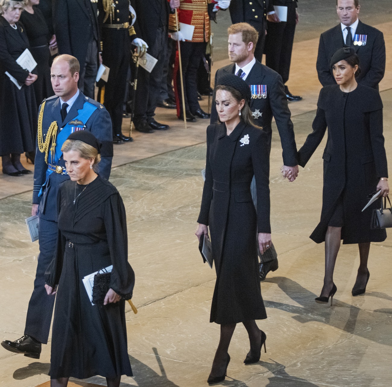 - The coffin carrying Queen Elizabeth II rests in Westminster Hall for the lying-in-state. William, Prince of Wales, Kate, Princess of Wales, Prince Harry and his wife Meghan. 14/09/2022.,Image: 722719941, License: Rights-managed, Restrictions: , Model Release: no, Credit line: Linda Nylind / Avalon