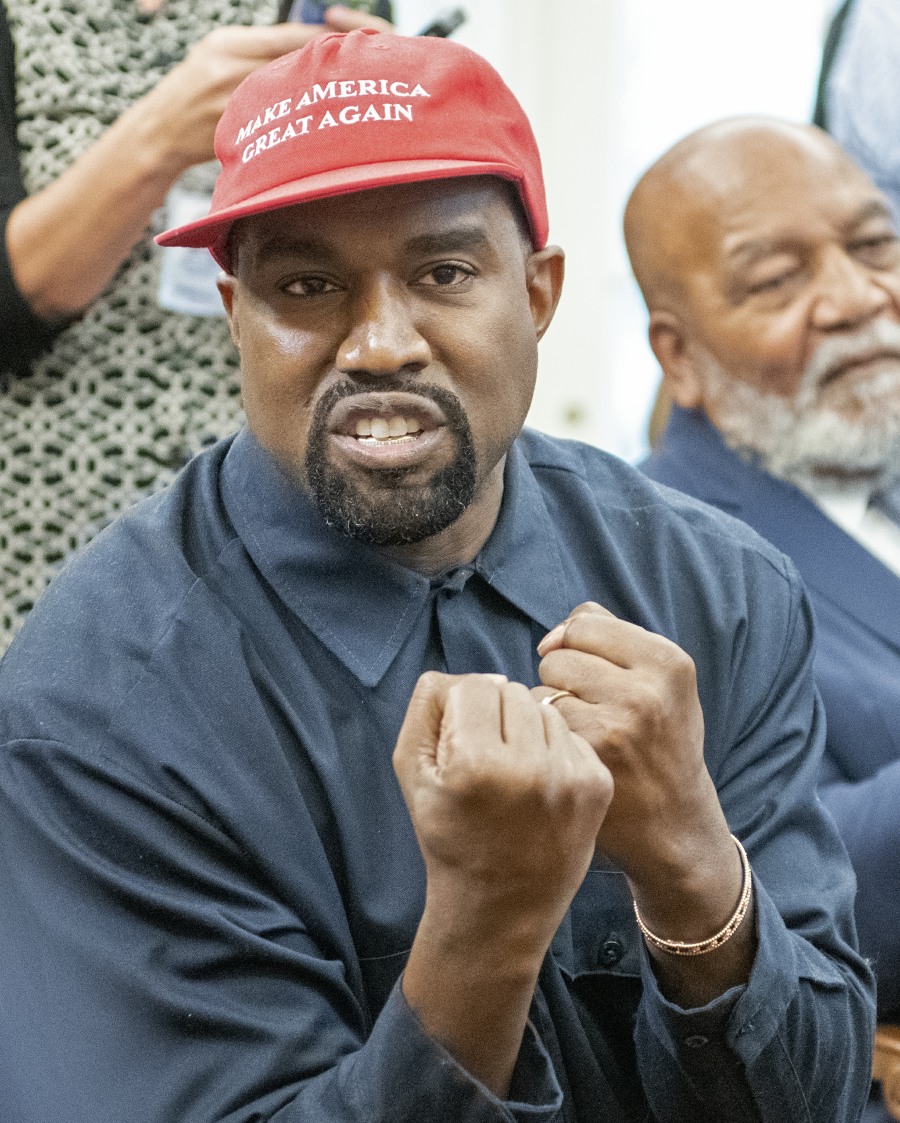 - Kanye West listens as he as he and Jim Brown meet with United States President Donald J. Trump in the Oval Office of the White House in Washington, DC on Thursday, October 11, 2018. Credit: Ron Sachs / CNP | usage worldwide