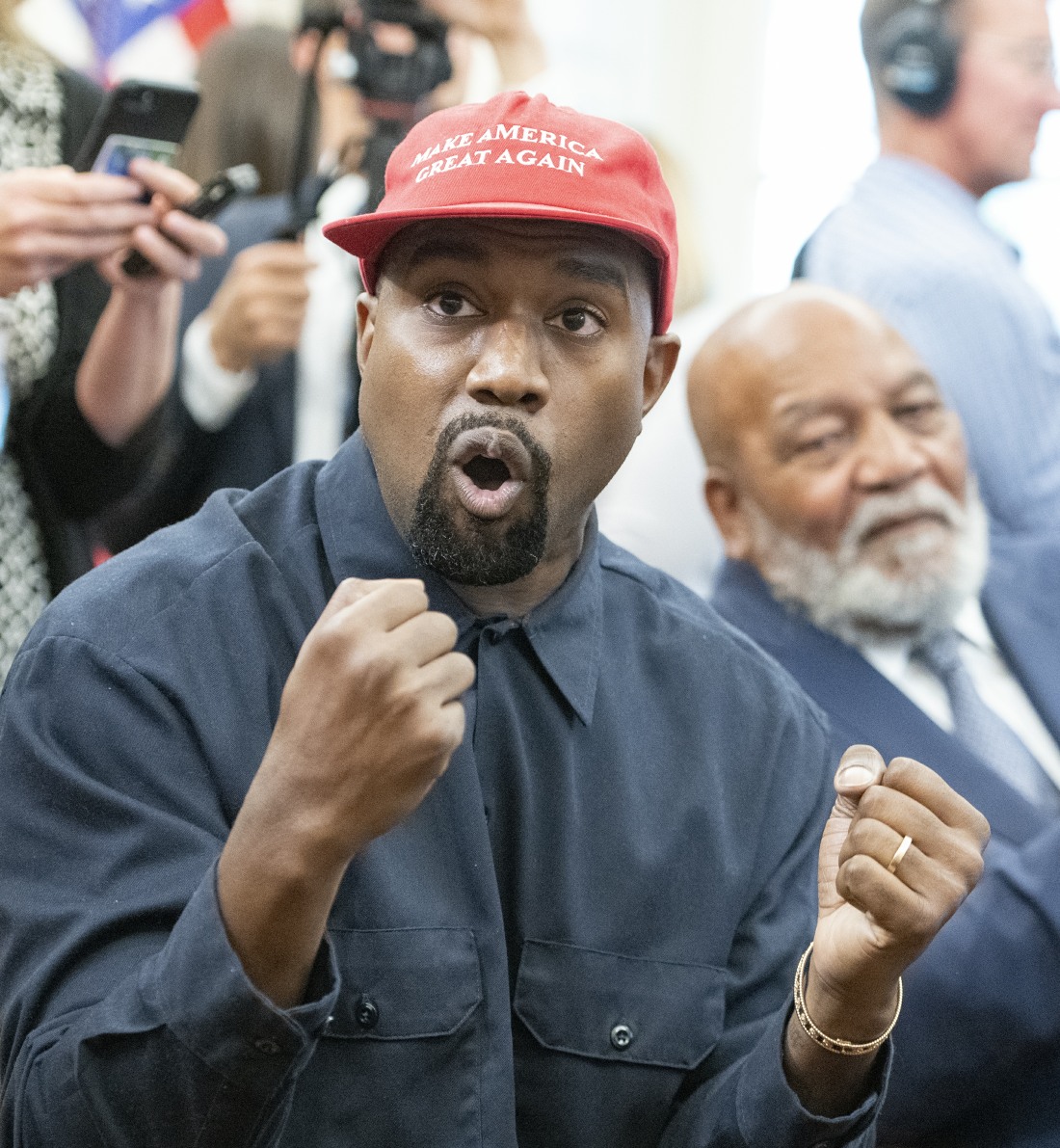 - Kanye West makes a statement to the media as he meets with United States President Donald J. Trump and Jim Brown in the Oval Office of the White House in Washington, DC on Thursday, October 11, 2018. Credit: Ron Sachs / CNP | usage worldwide