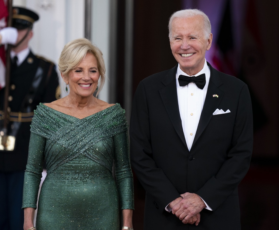 - President Joe Biden and First Lady Jill Biden with Prime Minister Narendra Modi arriving on the North Portico of the White House ahead of a state dinner. Biden and Modi announced a series of defense and commercial deals designed to improve military and economic ties between their nations during a state visit today. Featuring: First Lady Dr. Jill Biden, President Joe Biden Where: Washington, District of Columbia, United States When: 22 Jun 2023 Credit: Al Drago/POOL via CNP/startraksphoto.com