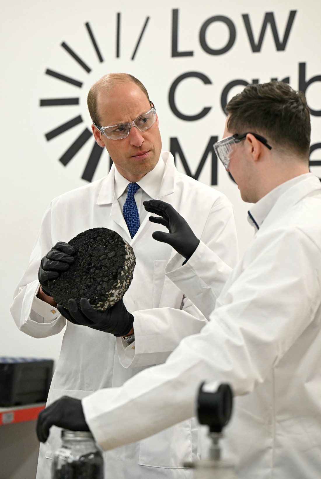 - Britain’s Prince William, Prince of Wales reacts as he is shown a sample of low carbon tarmac during his visit to visit Low Carbon Materials in Seaham, north east England on April 30, 2024, to learn more about how they are working to create low-carbon construction material alternatives since becoming a 2022 Earthshot Prize Finalist.,Image: 869119971, License: Rights-managed, Restrictions: *** NO UK USE FOR 48 HRS ***, Model Release: no, Credit line: OLI SCARFF / Avalon