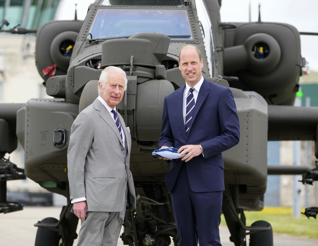 - Britain’s King Charles III officially hands over the role of Colonel-in-Chief of the Army Air Corps to Prince William, The Prince of Wales in front of an Apache helicopter at the Army Aviation Centre in Middle Wallop, England, Monday, May 13, 2024.,Image: 872553030, License: Rights-managed, Restrictions: -, *** NO UK USE FOR 48 HRS ***, Model Release: no, Credit line: Kin Cheung / Avalon