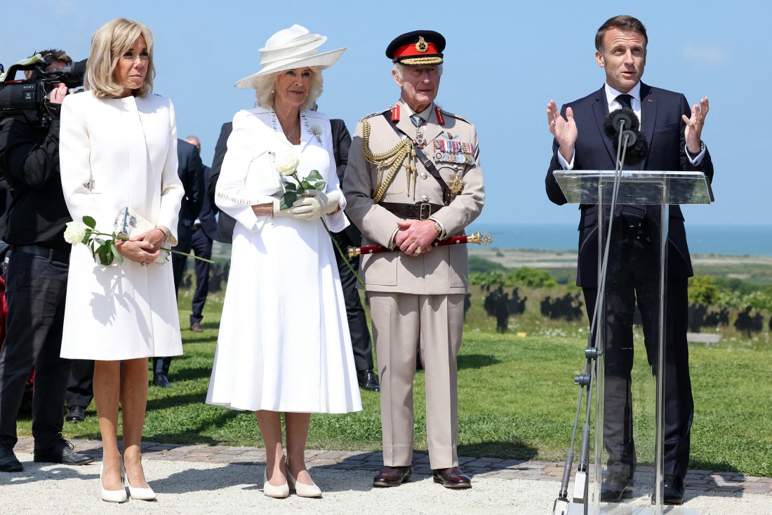 - Franco-British ceremony at the Ver-sur-mer memorial, during the 80th anniversary of the D-Day landings. Featuring: President Emmanuel Macron, King Charles III, Brigitte Macron, Queen Camilla Where: Ver-sur-mer, France When: 06 Jun 2024 Credit: Abaca Press/INSTARimages **NORTH AMERICA RIGHTS ONLY**