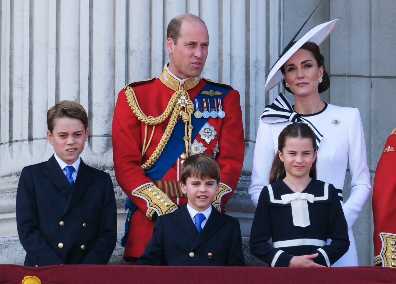- Prince George, Prince Louis, Prince William, Prince of Wales, Catherine, Princess of Wales and Princess Charlotte on the palace balcony following Trooping the Colour on Saturday 15 June 2024 at Buckingham Palace, London. Trooping the Colour is a traditional parade held to mark the British Sovereign’s official birthday. This year the colours were trooped by The Irish Guards. .,Image: 881850912, License: Rights-managed, Restrictions: World Rights – Julie Edwards/Avalon.Red, Model Release: no, Credit line: Julie Edwards / Avalon
