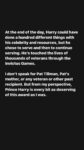 something all these yahoos are forgetting, especially when saying that Harry shouldn’t get the honor because he’s a famous rich guy and that only lesser known people should be honored using the rationale that Tillman chose to serve instead of taking the easy way out continuing to playing pro ball is that there actually is a pretty big parallel between Tillman and Harry in that Harry also could have skipped serving (and avoided a war zone) because he is a prince, and yet he chose to serve. Harry made the same damn choice to put his privilege aside to serve. Unlike Tillman, Harry did not die in Afghanistan but he sure as hell went out of his way to honor the military & help veterans all around the world when he returned home