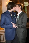 These are some lovely photos of Jim Carrey and Ewan McGregor receiving their “Chevalier Des Arts Et Des Lettres” at the Ministry of Culture in Paris, France. They are in France to promote their (gay) prison love story I Love You Phillip Morris, and as such, they puckered up and kissed each other right there at the Ministry of Culture. Personally, my favorite part of the kissing photos is that Ewan’s hand is creeping up, almost as if he’s trying to get to second base with Jim.
