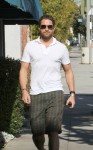 I was looking through some new photos, and I saw this grouping called “Gerard Butler’s Mysterious Detour”. Basically, the paparazzi were following him around all day yesterday in LA, and they took several photos of Gerard (driving his black SUV) around town, and then making a “mysterious detour” down an alley, then stopping the car to speak to a young lady (photo below). In an alley. So… is Gerard picking up hookers now?