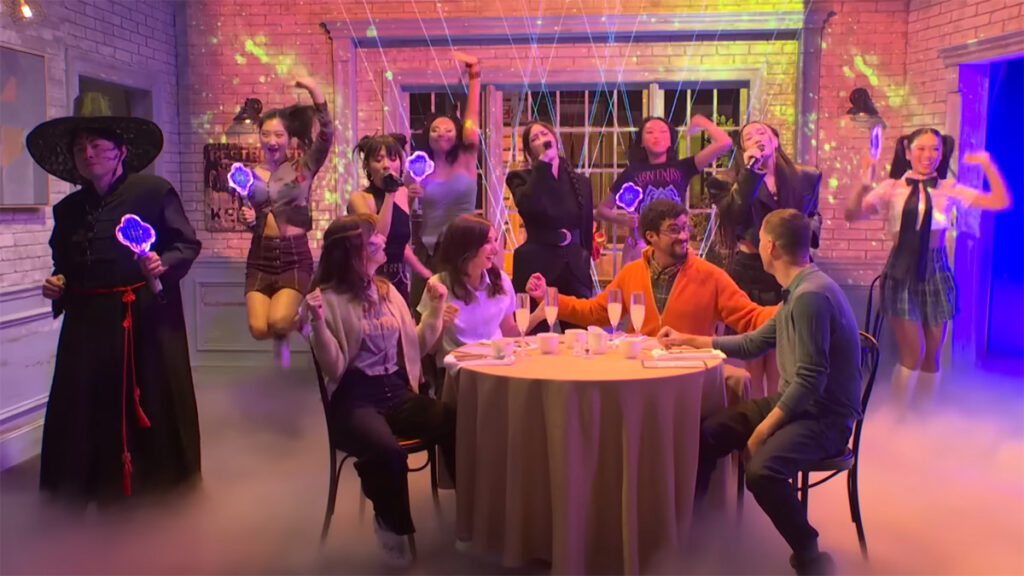Saturday Night Live kicked off its 51st season this weekend with Bad Bunny as the host and Doja Cat as the musical guest. It was an okay episode with a charismatic host and a bajillion new cast members. One of the highlights of the show was a sketch in which four friends are at brunch. They’re all catching up on what’s been going on with their lives. Everyone has something outrageously topical to offer, including Bad Bunny’s character, who is obsessed with the movie KPop Demon Hunters. Well, one thing leads to another, and suddenly, we had the the inaugural live performance from the three women who sang for Rumi, Mira, and Zoey, aka Huntrix.