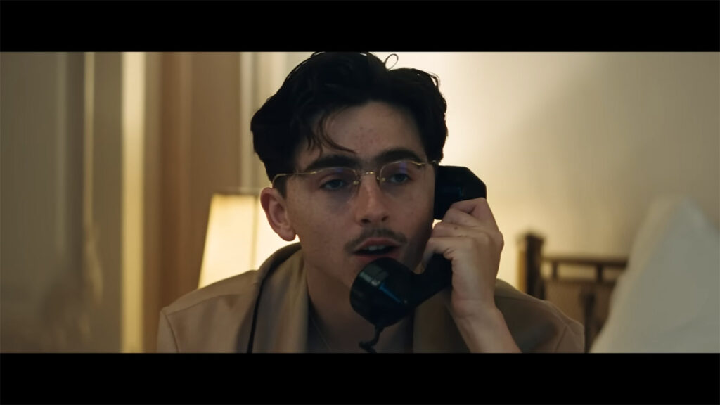 …But this is fundamentally Chalamet’s movie. You sense he feels this character in his bones — a New York kid of wide-eyed ambition with a vision for conquering the world, and who will stop at nothing to get there. “In spirit, this is the most who I was that I’ve had to play a role. This is who I was before I had a career,” Chalamet says. “Some people are fortunate enough to stumble into their success or be passive about their pursuit of whatever they want to do in life. That wasn’t it for me. For me, it was putting in the 10,000 hours. It was dropping out of college. It was taking a risk. It was pursuing projects that were untraditional at first — at the time, it was kind of radical, the choices I was making when I was 20.”