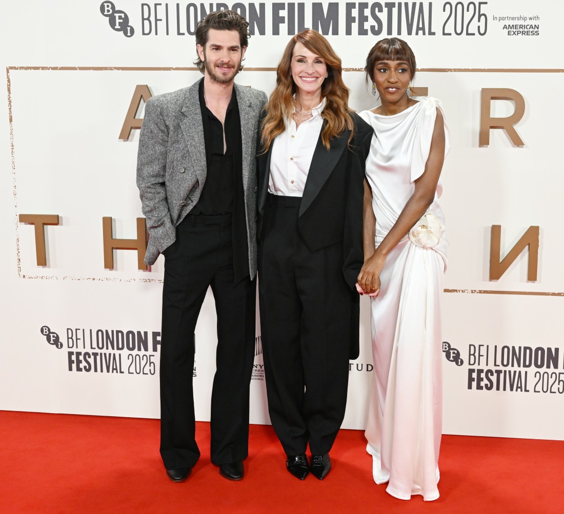 - Andrew Garfield, Julia Roberts and Ayo Edebiri attends ‘After the Hunt’ Premiere during the BFI London Film Festival, at the Southbank Centre, Royal Festival Hall in London, England. UK. Saturday 11th October 2025,Image: 1044916806, License: Rights-managed, Restrictions: NORESTRICTIONS, Model Release: no, Pictured: LFF- After the Hunt – Premiere, Credit line: James Warren/Bang Showbiz/Avalon