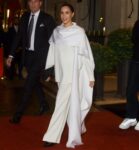 The black look was just perfection. But (and I know I’m gonna get yelled at for this take, so let me preface it by saying I love Meghan, usually love her style, and no, I wouldn’t prefer anything Kate might wear) I kinda hate the white look. I’ve tried to like it, but I can’t. It’s too much fabric without doing anything particularly interesting with it, and it’s swallowing her (the bare shoulder prevents this effect in the black look). It’s giving Miranda Priestly toga party. It’s giving Michelin Man at an ashram. I’m sure she’ll knock it out of the park at the next event she attends, but this is a (very rare!) miss to me.