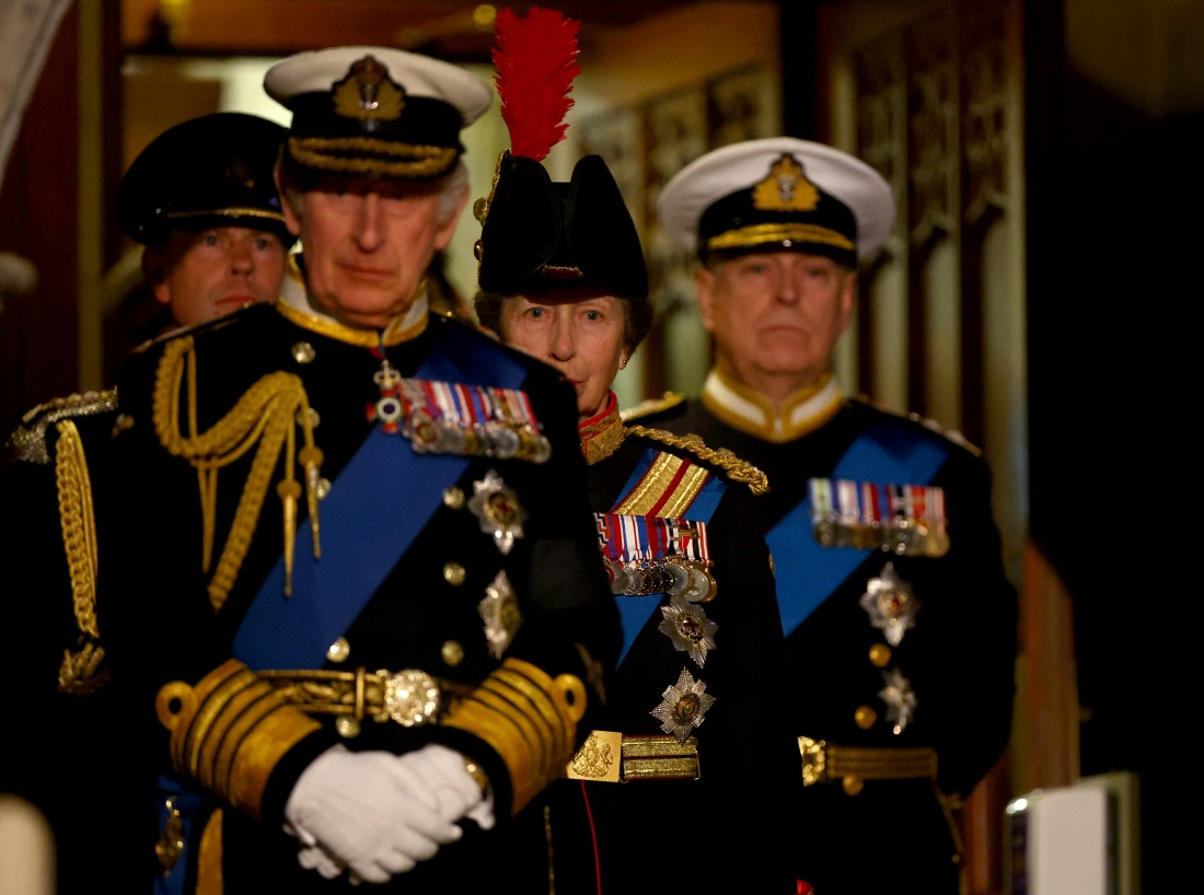 - Britain’s King Charles, Britain’s Anne, Princess Royal, Prince Andrew and Prince Edward attend a vigil, following the death of Britain’s Queen Elizabeth, inside Westminster Hall in London, Britain, September 16, 2022.,Image: 723504646, License: Rights-managed, Restrictions: , Model Release: no, Credit line: HANNAH MCKAY / Avalon
