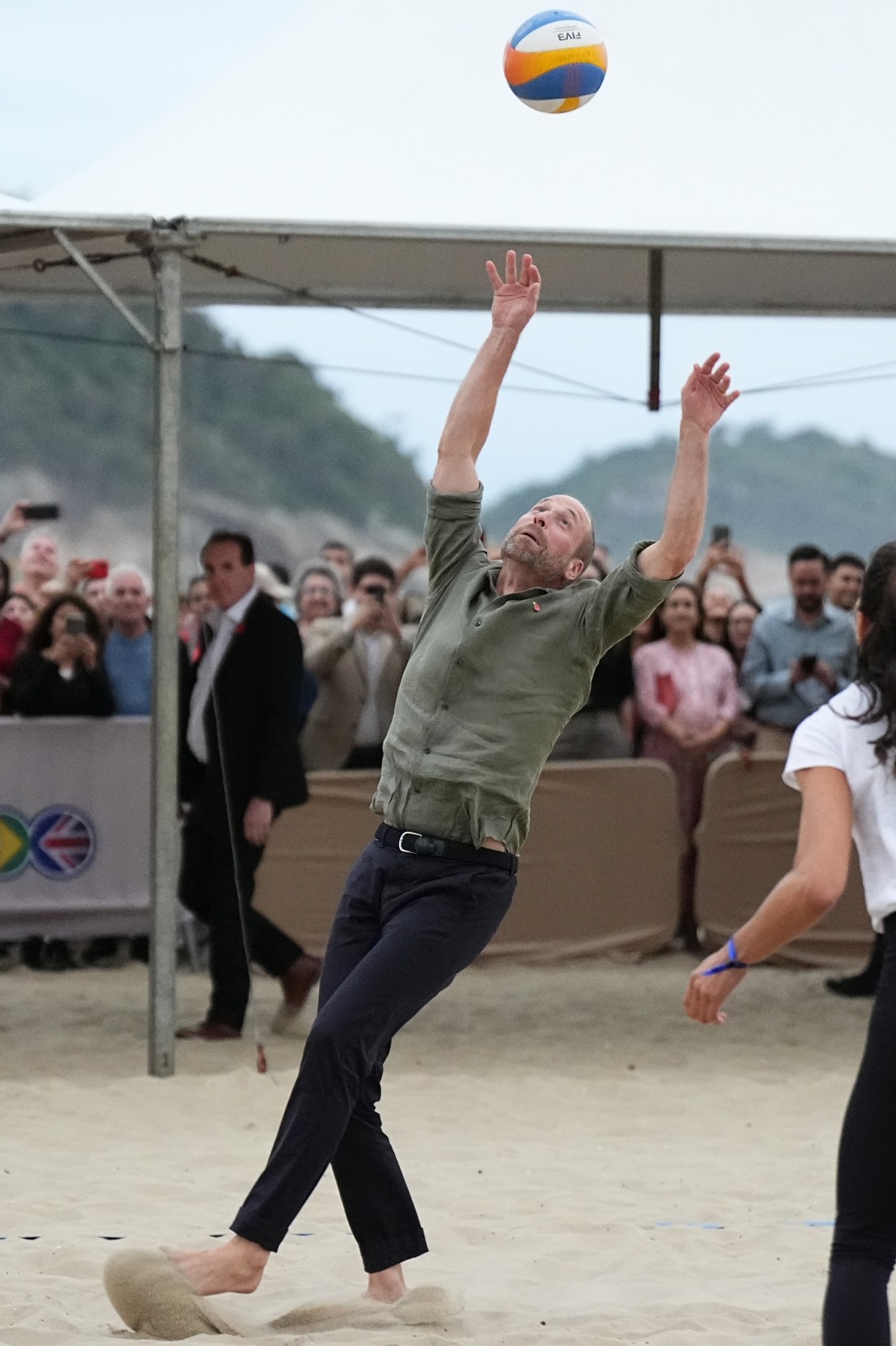 - The Prince of Wales takes part in a game of volleyball with players from thee Levante Institute, a local beach volleyball school, at Copacabana Beach in Rio de Janeiro, on day one of his visit to Brazil for the annual Earthshot Prize Awards Featuring: Prince William Where: Rio de Janeiro, Brazil When: 03 Nov 2025 Credit: Aaron Chown/PA Images/INSTARimages **NORTH AMERICA RIGHTS ONLY**