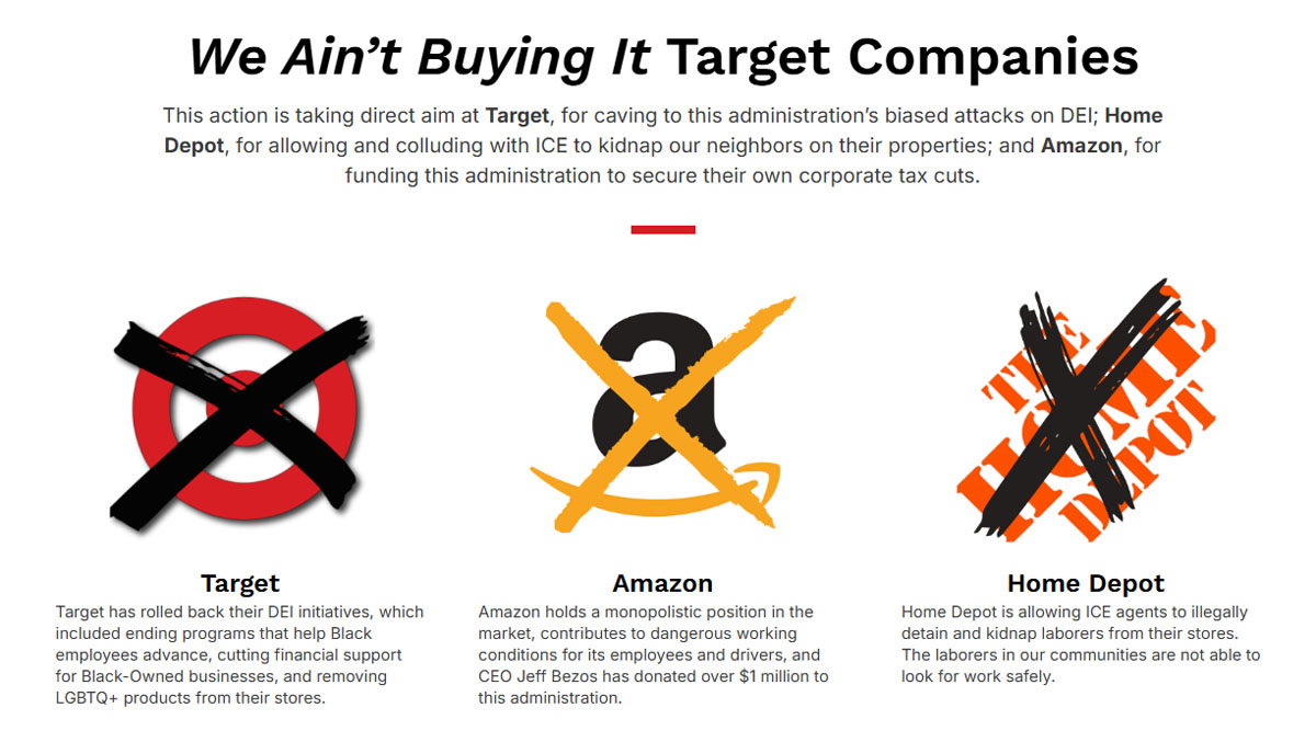 The “We Ain’t Buying It” campaign follows the successful “Target Fast” boycott over its rollback of DEI initiatives, which resulted in Target losing significant store foot traffic, stagnant sales revenue, and, eventually, laying off more than 1,800 employees.