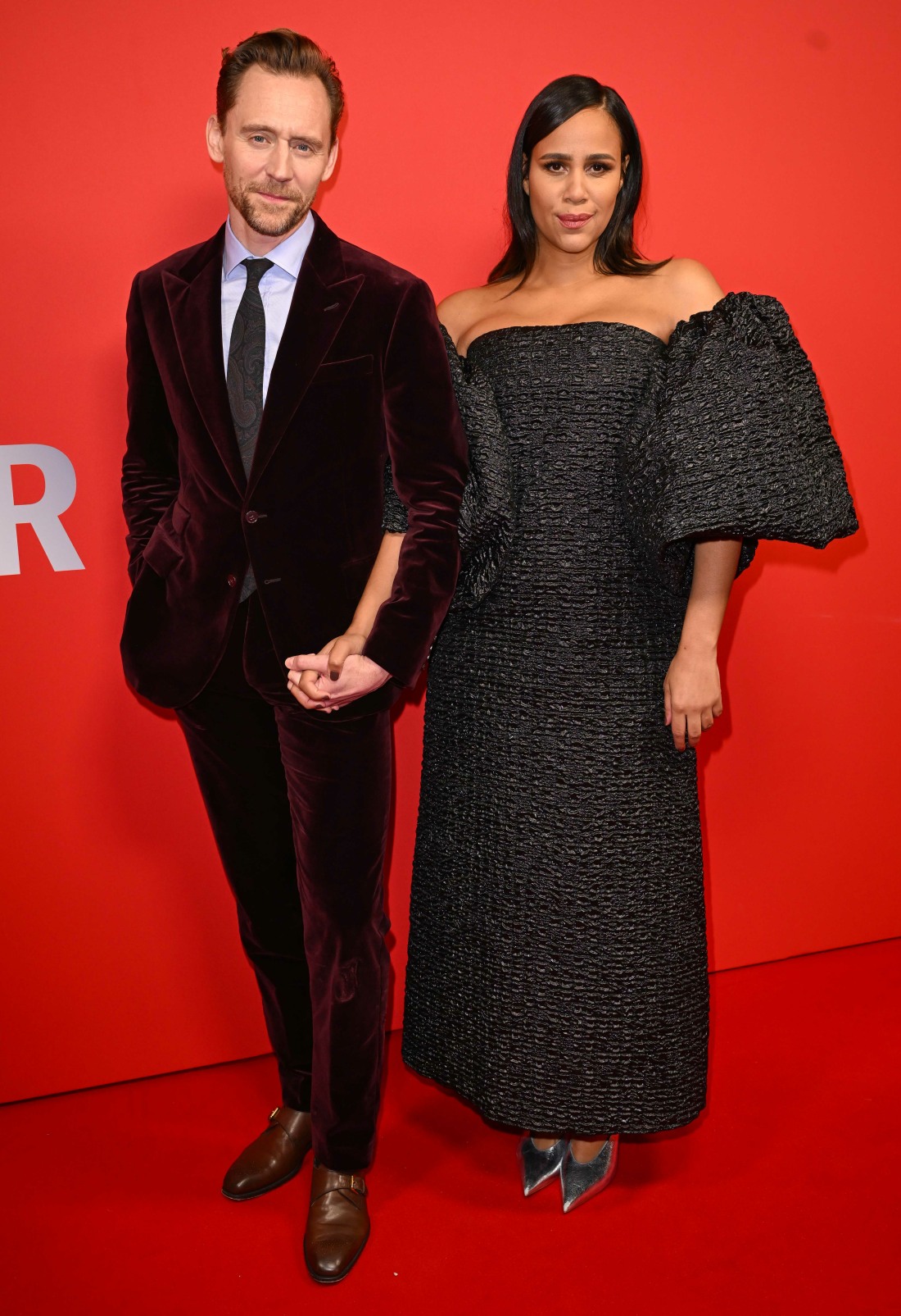 Zawe Ashton made her first public appearance after quietly welcoming her second child with her fiancé Tom Hiddleston. The actress, 41, put on a stylish display in a black strapless dress with dramatic ballooned sleeves.