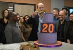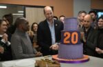 In a short speech to staff, volunteers and beneficiaries he said: “Many of you have been here many more years than that and it’s an amazing moment to think, in 20 years, how much has changed and been achieved by all of you….The Centrepoint family is one I am very proud to be a part of and I can’t thank you all enough for the hard work, every day, you give to help other people. It’s fantastic, and that massive cake signifies the love, generosity and time you all give to helping others, so make sure you take a piece.”