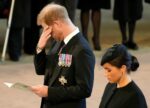 - LONDON, ENGLAND – SEPTEMBER 14: An emotional Prince Harry, Duke of Sussex and Meghan, Duchess of Sussex pay their respects in The Palace of Westminster after the procession for the Lying-in State of Queen Elizabeth II on September 14, 2022 in London, England. Queen Elizabeth II’s coffin is taken in procession on a Gun Carriage of The King’s Troop Royal Horse Artillery from Buckingham Palace to Westminster Hall where she will lay in state until the early morning of her funeral. Queen Elizabeth II died at Balmoral Castle in Scotland on September 8, 2022, and is succeeded by her eldest son, King Charles III.,Image: 722660434, License: Rights-managed, Restrictions: , Model Release: no, Credit line: Christopher Furlong / Avalon
